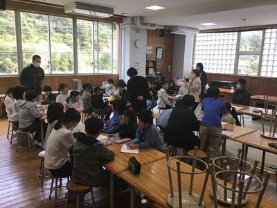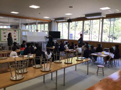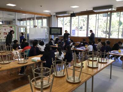 今日の業間に、全校遠足の見学の順番やバスの席を班ごとに話し合いました。みんなでワクワクしながら楽しそうに話し合っていました。異学年で話し合って自分達の行動を決められるのは、小規模校の良さだと思います。全校遠足が楽しみです。