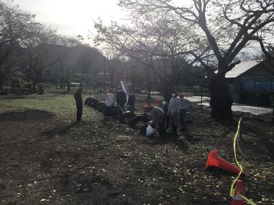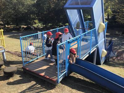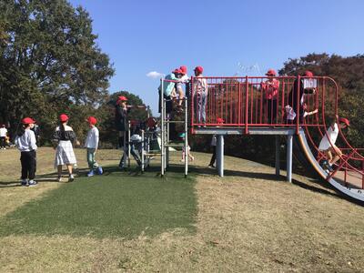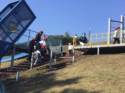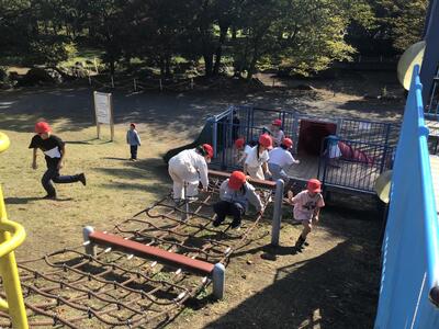 お弁当を食べた後は、広場で汗びっしょりになるくらい元気に遊びました。