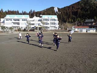 凧揚げをしました!(1年生) 投稿日時 : 2017/01/19 教員 カテゴリ:1年生 今、1年生は生活科で「むかしのあそびをしよう」という学習をしています。みんなで凧に好きな絵を描き、凧揚げをしました。空高く揚がった凧に、みんな「すごい!すごい!」と大喜び。寒さも吹き飛ぶくらい、何度も嬉しそうに走っていました。