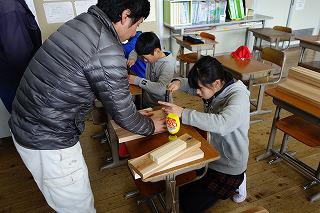 6年生卒業制作(木工教室) 投稿日時 : 2017/02/17 校長 カテゴリ:6年生 2月13日に6年生が卒業制作を実施しました。毎年,7区の江田材木店様にご協力をいただき,木工教室として行っています。今年度は,各教室で使えるように踏み台を作りました。子どもたちは,真剣な表情で作品の制作に取り組みました。制作した踏み台は,3月1日の「6年生を送る会」の折に,卒業生から下級生へのプレゼントとして贈呈する予定です。