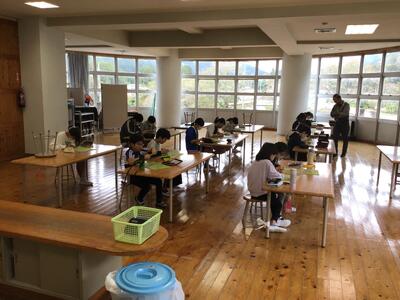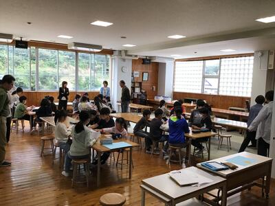 本日の1、2校時に全校生で図工を行いました。内容は紙版画と木版画です。みんなでやることで、いろいろな先生方からアドバイスを受けることができたり、違う学年の友達と話し合ったりすることができ、小規模校ならではの時間だったと思います。どんな作品が完成するか楽しみです。