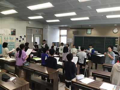本日の3校時、地域の方に講師としてお越しいただき、2回目の合唱の練習が行われました。今日からは、下のパートの練習も行われ、綺麗な二部合唱になってきました。真剣に楽しみながら練習をして、どんどん上手になってくるので、聞いていてとても気持ちいいです。講師の先生、ありがとうございました。来週もお願いします。