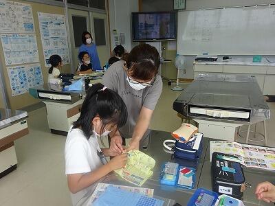 本日は、5年生の家庭科の授業で、ボランティアティーチャーとして子供たちを支援していただきました。玉結びや玉止めがうまくできず、くじけそうになっていた子供たちも、アドバイスやていねいな指導を受けて、できるようになりました