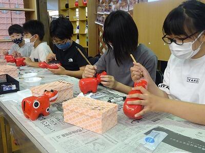 一日目は、会津若松市の鶴ヶ城、武家屋敷、会津藩校日新館等を見学しました。赤べこの絵付け体験では、子供たち一人一人が、オリジナルの赤べこや黒べこを作成しました