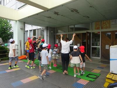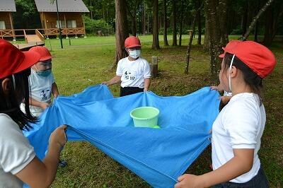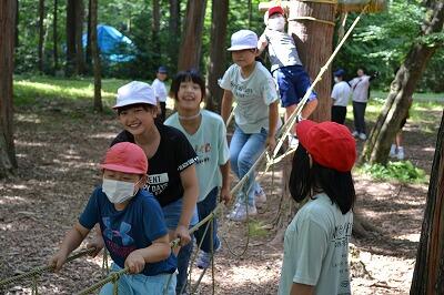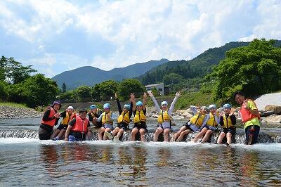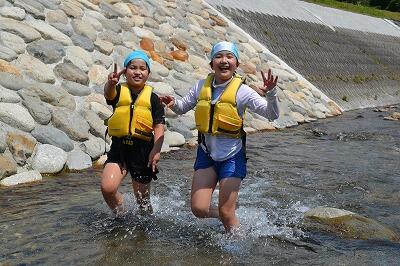 暑さの中、熱中症対策をとりながら、仲間づくりゲームや川下りに元気に取り組む子供たちの姿が見られました。