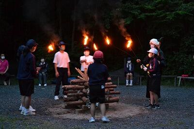 キャンプファイヤーは、中学1年生と合同で実施し、楽しく交流