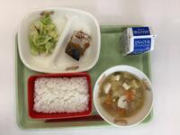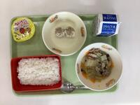 今日の給食は、さばの味噌煮、ご飯、塩昆布あえ、のっぺい汁、牛乳です。どの学校でも、さばの味噌煮は児童に人気があります。今日ののっぺい汁は、一見けんちん汁と似ているので、どんな違いがあるのか調べてみました。