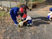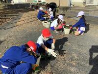 5・6年生が、マリーゴールドをプランターに植えていました。