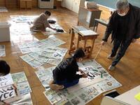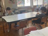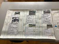 昼休みに図書室で、なかよし班ごとに、友達に書いてもらったカードを貼り付けました。