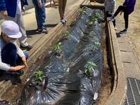 教頭・事務主任及び男性職員3名が事前にマルチをしていたので、とても植え付けがしやすかったようです。