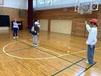 3〜6年生はバスケットボールを行っていました。3対3で対戦していて、パス回しができていました。
