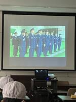 読書ボランティアの方が来校し、読み聞かせをしてくださいました。今日のお話は、民謡「佐渡おけさ」の由来についてです。