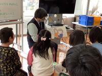 朝の学習の時間は、1・2年生が身振りをつけてグリーティングソングを歌っていました。ジョリーフォニックスの「i」のお話を聞き、発音を練習しました。ALTの先生の「Can you see the inkyーmouse?」という質問に、1・2年生は順番に前に出て画面からネズミさんを探し、指で示していました。
