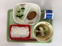 今日の給食は、ハンバーグおろしソース、ご飯、キャベツの塩昆布和え、沢煮椀、牛乳です。3・4年生に感想を聞いたところ「ハンバーグのおろしソースがさっぱりとしていて美味しかったです。」「塩昆布和えは昆布の味がよく効いていて美味しかったです。」「ハンバーグとご飯の組み合わせがぴったりです。」とのことでした。"美味しい給食に感謝"ですね。