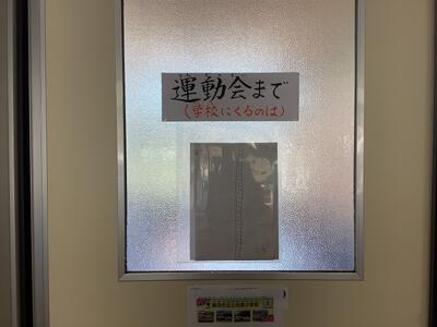 いよいよ運動会が明日となり、校長室前のカレンダーは2年児童が書いてくれた「あと1日」が掲示されています。