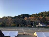 今日は野外給食の日で、校庭に出て全校生で食べました。天気がよく気温も高めだったので、テントを張りました。児童は家から持ってきたレジャーシートを敷き、テントの中や桜の木陰に場所を定め、ピクニック気分で給食弁当を食べました。秋の風が気持ちよく、自然を感じながらのランチタイムでした。