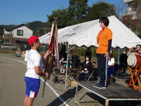 晴天の下、運動会が晴れやかに開会しました。開会式は、司会進行からスローガンの説明まで、児童が役割を担いました。全員が、堂々とそしてしっかりと、その役割を果たしていました。本校卒業生である中学生が来てくれて、国旗掲揚など様々な仕事をサポートしてくれました。