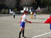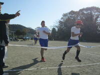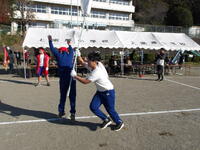 サッカーゴール付近では、赤組団長と白組団長が、応援合戦の声出しと流れの確認をしていました。2人の団長さんは、練習時には中心となり下級生を一生懸命にまとめています。