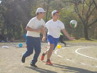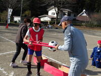 ⑤№.4「親子競技:ボールリレー」親子二人で一組になり、体操棒2本でボールを運ぶ競技です。ボールは、棒の上に乗せても棒で挟んでもOKです。どんな方法で運びましたか?