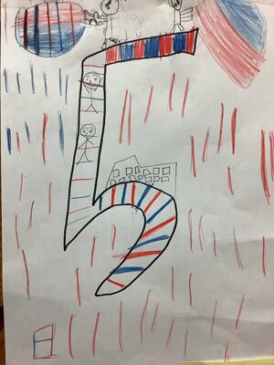 今日のカレンダーは、1年生が描いてくれました。へびが数字の「3」を形作ってくれています。