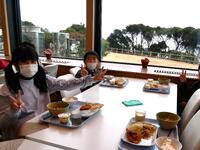 食事はバイキング形式です。オーシャンビューをバックに、今回最初の食事をいただきました。
