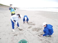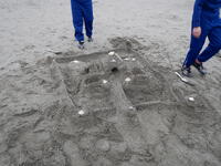 海岸に降りていき、砂浜での活動を行いました。3人で何を作るか話し合い、作業を分担しながら作っていきました。完成作品は『砂の城』とのことです。白い貝や穴の開いた部屋などを施した四角のお城、素敵な作品に仕上がりましたね!