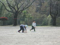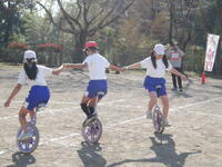 多くの児童が校庭に出て遊んでいました。すべり台、鬼ごっこ、野球、一輪車、竹馬、ブランコなど思い思いの遊びを楽しんでいました。