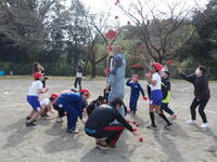 昼休みのなかよし集会は全児童で「だるまさんの一日」という遊びをしました。「だるまさんがころんだ」の進化系で、鬼が言った動作をしながら、前に進んでいくものです。「だるまさんが…ご飯を食べた!」と言ったら、皆はご飯を食べる真似をして静止します。動いたら、捕まってしまいます。「…寝た!」「…サッカーをした!」「…お風呂に入った!」などが出ました。面白かったのは、「…お金持ちになった!」です。児童は一瞬、表現に迷いながらもバンザイをして喜んだり、手でお金の形を作って笑顔になったりして、一同爆笑していました。