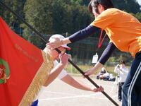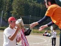 ⑭№.13「閉会式」児童の司会進行で行われました。5年児童による結果発表のあと、白組に優勝旗、赤組に準優勝カップが授与され、各団長が受け取りました。国旗後納を中学生が手伝ってくれました。校歌を声高らかに歌い、令和7年度運動会は幕を閉じました。