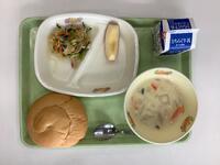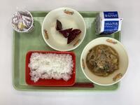 今日の給食は【塩(エン)ジョイランチ】納豆、大学いも、ご飯、すき焼き風煮、牛乳です。塩分に含まれているナトリウムは、体内の水分を調節したり、筋肉や内臓の働きを正常に保ったりする大切な役割があるそうです。塩分の摂りすぎは病気のもと、気をつけたいです。