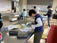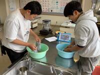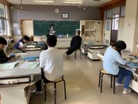 5・6年生は、4校時の家庭科で洗濯の実習を行っていました。各自持ってきた靴下を、学習した手順でもみ洗いし、すすぎ、絞っていました。もみ洗いしていると洗剤液が濁ってきて、「汚れが出てきた!」と驚き、手で洗う効果を実感しているようでした。