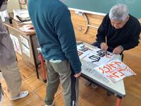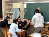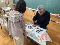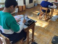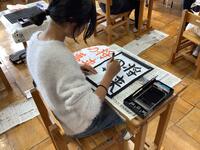 習字の先生が来校し、書道をご指導いただきました。45度で入る始筆や折れる時の筆の角度など、具体的にご助言いただけるので、児童は助言を次に生かして何度も挑戦していました。「この画がいいね。」と朱墨で花丸をつけてもらい、児童は笑顔になりました。上達した部分を賞賛してくださるので、児童は意欲をもって次々と半紙をセットして書いていました。