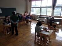 昨日、南摩中学校の小柳先生に来校いただき、1・2年生と5・6年生に英語の授業を実施していただきました。