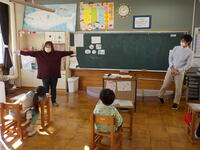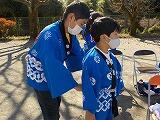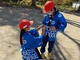 入退場の仕方やスタートの仕方など、手本になって教えていました。特に「はっぴ」を着てのよさこいソーランと上南摩小音頭の練習では、5・6年生たちは「はっぴ」の着方からたたみ方まで下級生たちに丁寧に指導していました。
