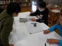 昇降口に掲示すると、早速1・2年生たちが集ました