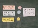 1・2年生の教室には、「思いやり・やさしやいっぱいカード」や「みんなで出し合った「がんばりやさんカード」、みんなで出し合った「やさしいことば」が掲示されています。担任の先生と一緒に、毎日笑い声が絶えない温かな学級です