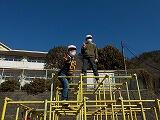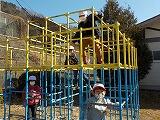 校庭担当の班は、特にジャングルジムを細かく点検していました。このジャングルジムは、先日地面の砂を補充することにより使用できる状態に戻ったばかりだからです。