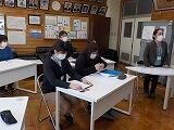 「先生、ふりかえりってどんなことを書くのですか?」との問いに、「この時間で気づいたことやもっとよく分かったこと、もっと知りたくなったこと、ちょっと思っていたことと違うなと感じたたこと、友達の意見で分かったことや感じたことなどを書いてください」と答えていました。児童の姿から指導の様子がうかがえます。そばで観ていた社会科担当者のドキドキした表情が楽しい授業でした