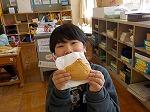 なんまん本舗の皆様から『なんまん焼き』をいただきました。代表として赤羽根良さんと高久敏則さんが、『卒業おめでとう会』の開催に合わせて持参してくださいました。大きくてかわいい『なんまん焼き』に、児童たちは大喜びです。美味しくいただきました。ありがとうございました。