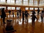 全校練習では、5・6年生たちが中心になって下級生たちをまとめ、練習の指揮をとっています。5・6年生たちは、下級生たちにわかりやすい説明の仕方や指示の出し方について事前に相談して進めます。練習後は、5・6年生たちが中心となっての反省会です。よかったことや、わかりにくかったところを出し合い、次の練習につなげます。職員は、困ったときに助言をする程度に留めています。