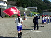 校庭での練習は、2回目ですが、隊形移動が上手にできるようになってきました。