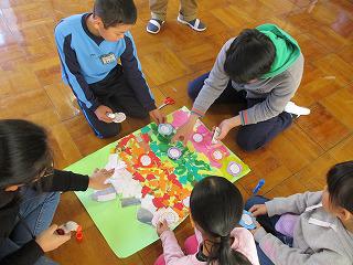 明後日の25日の終業式の日に引き渡し訓練を行います。今日は、その事前指導を兼ねて、防災教育として「災害図上訓練(DIG)」の手法を取り入れた学習をしました。全校生がなかよし班に分かれて活動しました。