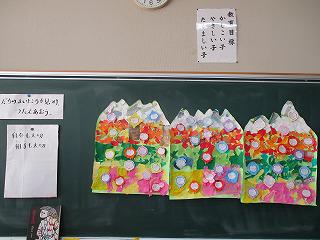 子供たちは事前に誰に書くかを決めて住所を調べてきました。うら面に書かれたイラストは来年の干支にちなんで、ねずみの絵が多かったようです。家に一度持ち帰りますので、保護者の皆様のチェックの後、学校にまた持たせてください。学校でまとめて郵便局に出します。年賀状ではなく寒中見舞いを書いた子もいます。みんなが、はがきの書き方を学び、日頃の感謝の気持ちを伝えるという貴重な学習をする機会をいただきました。関係機関の皆様に感謝申し上げます。
