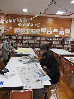 現在、毎朝、新聞7紙と小学生新聞2紙が届きます。それを4年~6年生が曜日ごとに分担して職員室から図書室まで持って行き、閲覧できるようにしています。今朝も金曜日担当の児童2人が職員室から新聞が入ったバッグを持って行って、3つの「しんぶん台」に置く新聞を決めました。その他の新聞は決められた箱に入れていました。係になったときは新聞各紙を見て比較することになります。