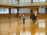 今日は朝から雨が降っていました。業間の体力づくりの持久走の練習は体育館で行いました。体育館が広いので、コースをつくって走りました。今日も頑張って走りました。