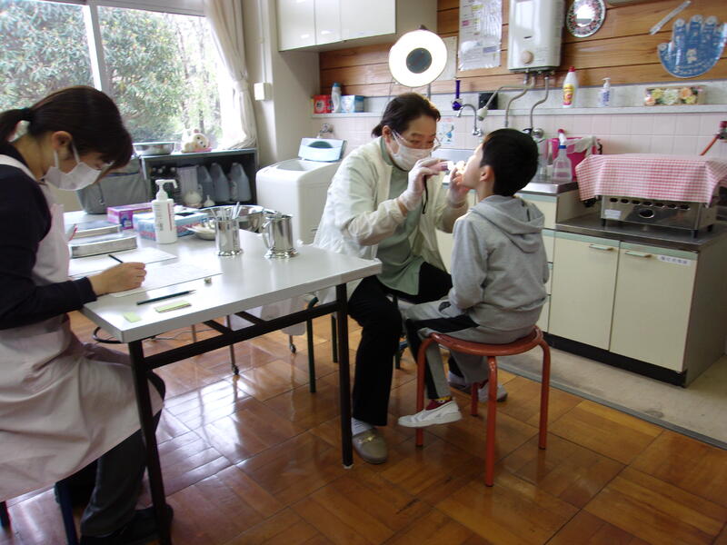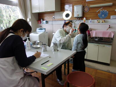 学校歯科医の先生が子どもたちの歯の状態を診察してくださいました。