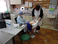 学校医の先生に、身体の健康状態を診ていただきました。胸の聴診、脊柱側わん、咽頭視診等です。