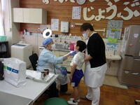 子どもたちは、先生と看護師さんにきちんとあいさつができました。