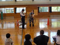 1・2年生は正しい歩行について、3~6年生は安全な自転車の乗り方について、それぞれ説明と実技指導を受けました。