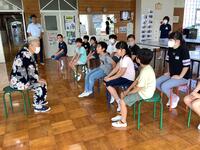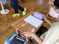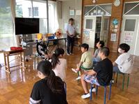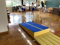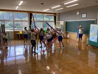 今年は暑い日が続き、校庭や体育館での体育実施が難しくなっています。そのため、今のところは冷房の効く教室で工夫して行なっています。